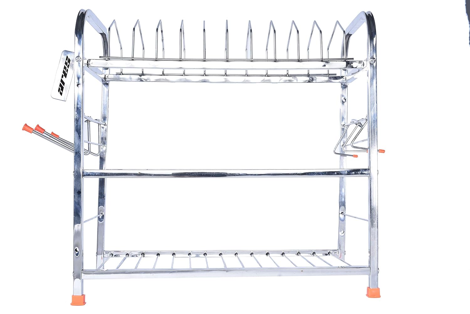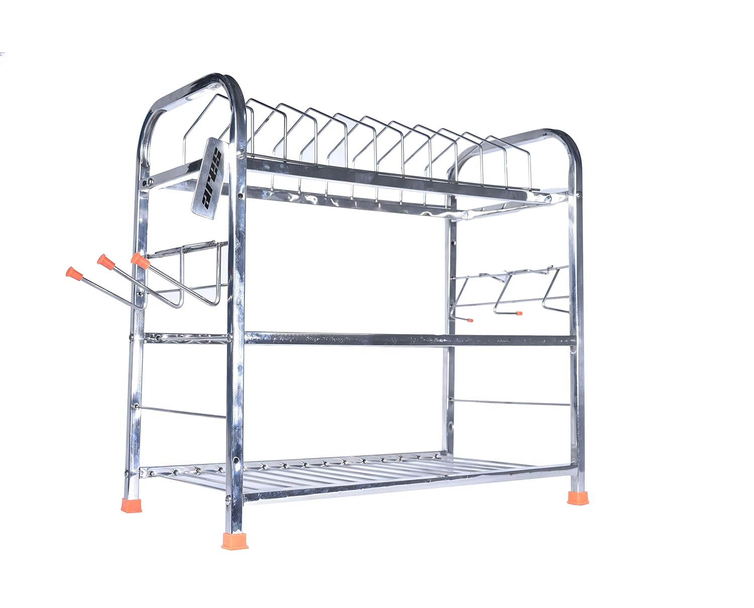 Ares 3 Layer- 18 Inch Kitchen Dish Rack Plate Cutlery Stand/Kitchen Utensils Rack/Modern Kitchen Storage Rack (Natural Steel)