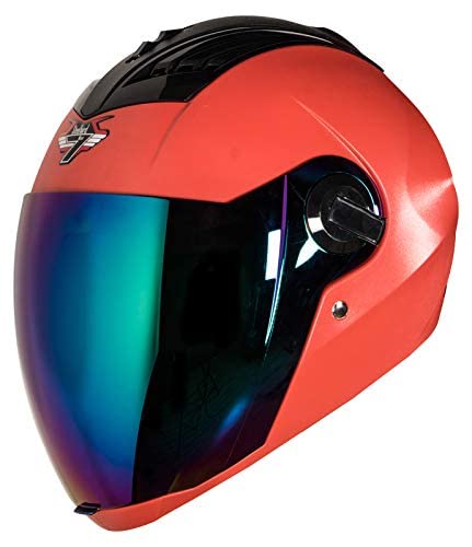 Steelbird SBA-2 7Wings ISI Certified Full Face Helmet for Men and Women Fitted with Clear Visor (Dashing Red with Chrome Blue Visor)