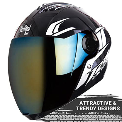 Steelbird SBA-2 Moon ISI Certified Full Face Graphic Helmet for Men and Women Fitted with Clear Visor (Dashing Black with Chrome Gold Visor)