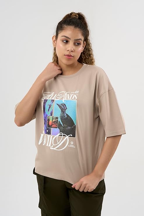 - DCYPHR Discovery Women's All Kinds Wild Graphic Tee- Dune Earth.