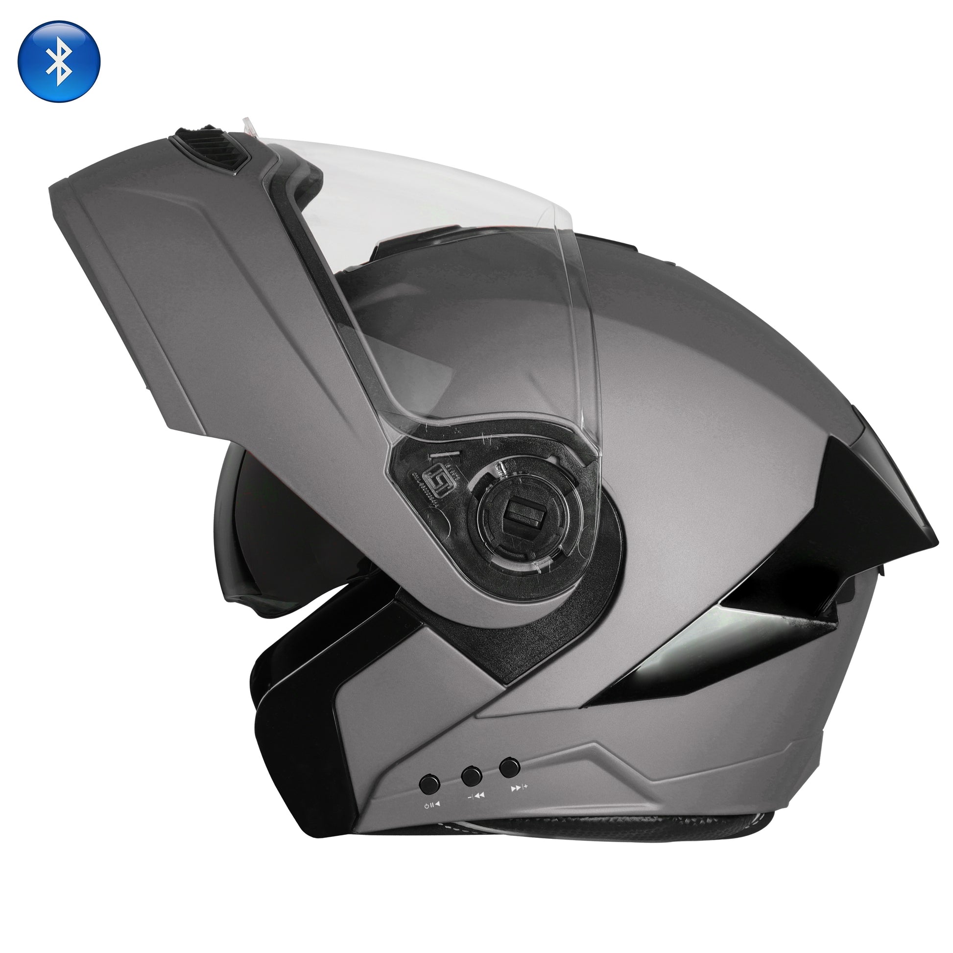Steelbird Bluetooth Flip Up ISI Certified Helmet for Men and Women with Inner Smoke Sun Shield | SBA-8 7Wings (Glossy Axis Grey)