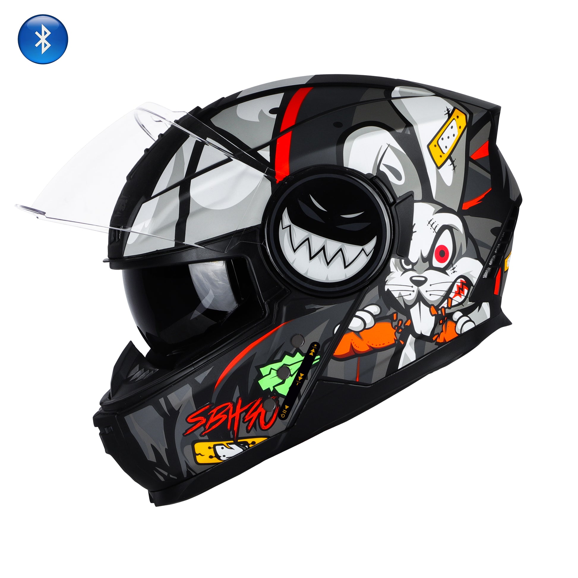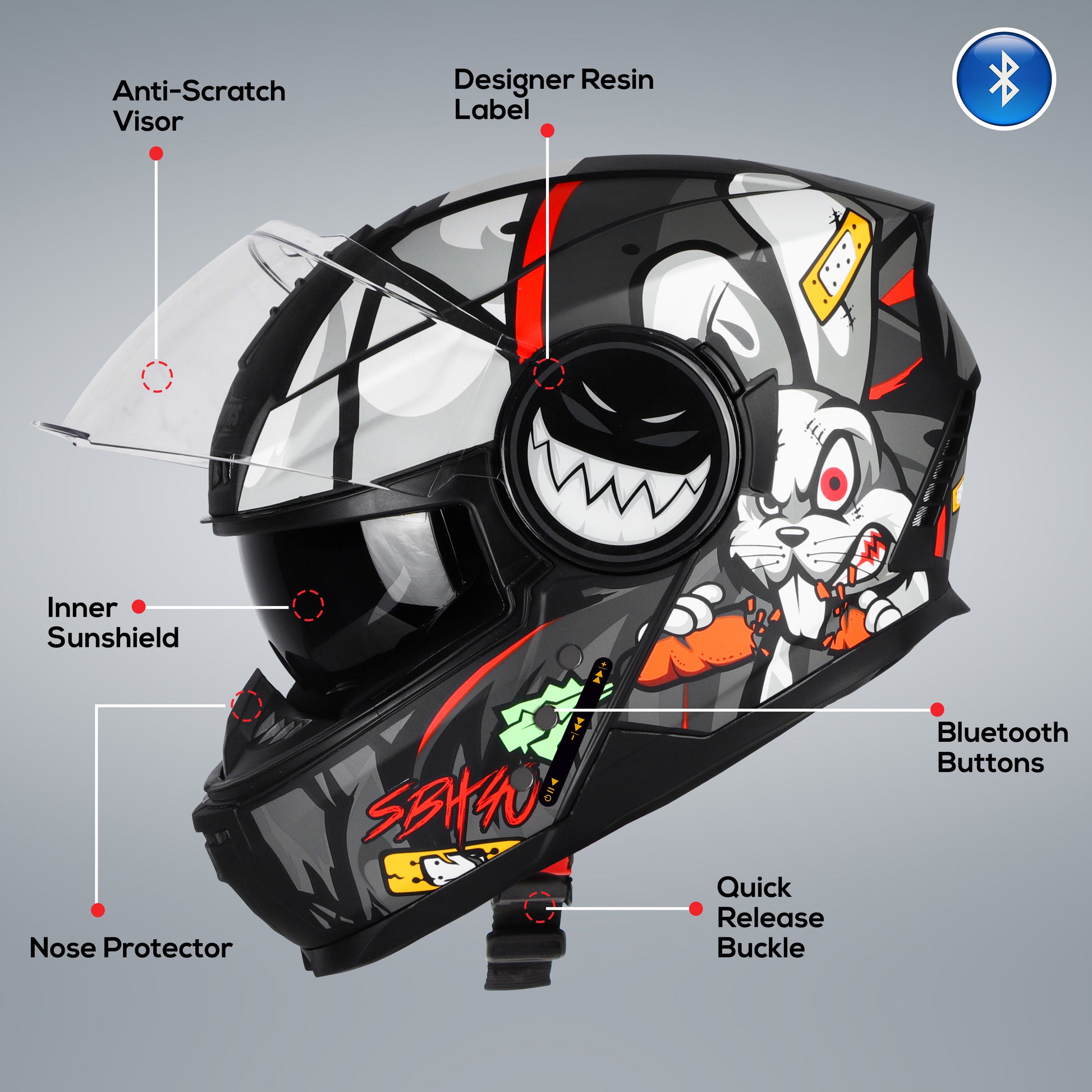 Steelbird Crazy Doe Bluetooth Full Face ISI Certified Graphic Helmet for Men with Inner Smoke Sun Shield | SBH-40 7Wings (Glossy Black Grey)