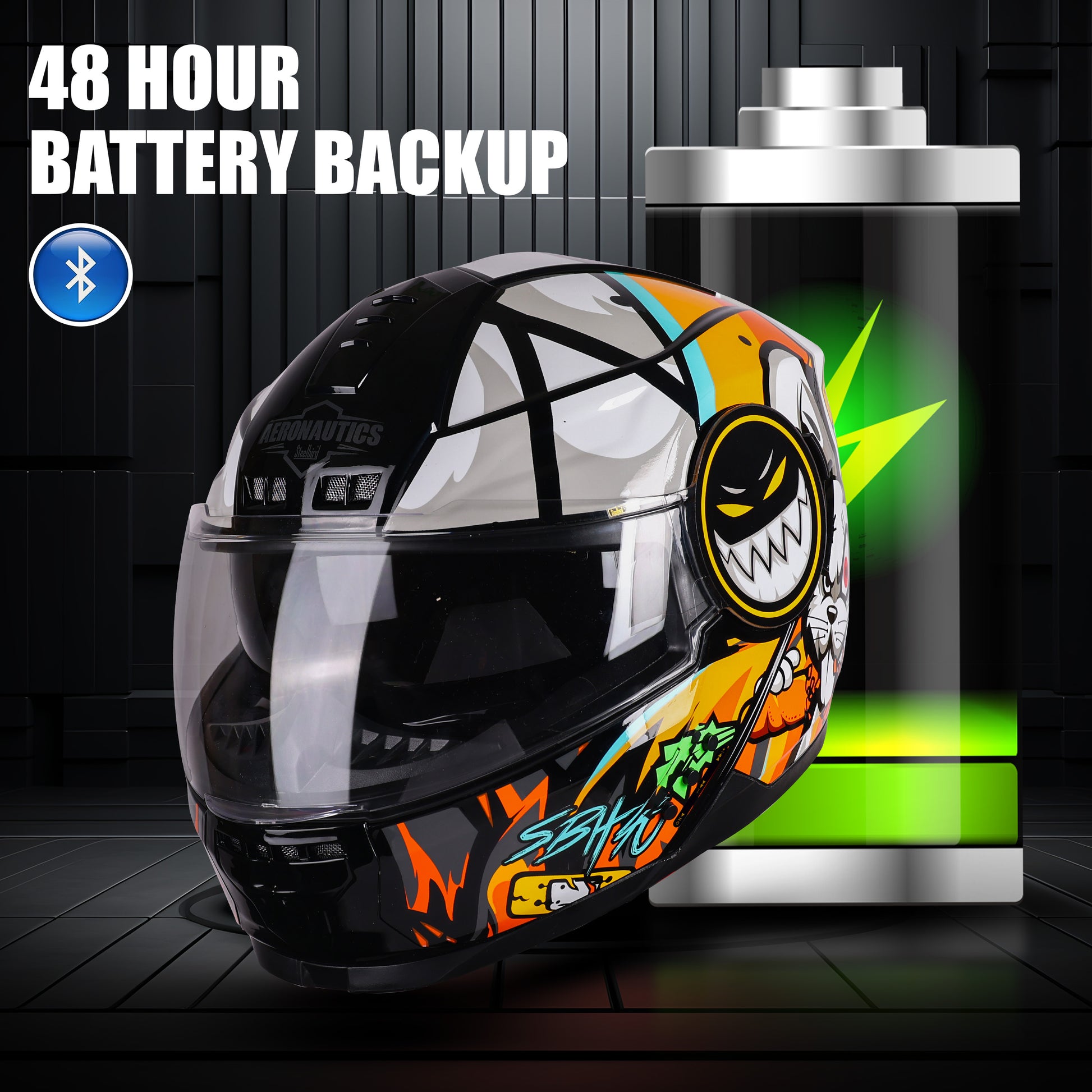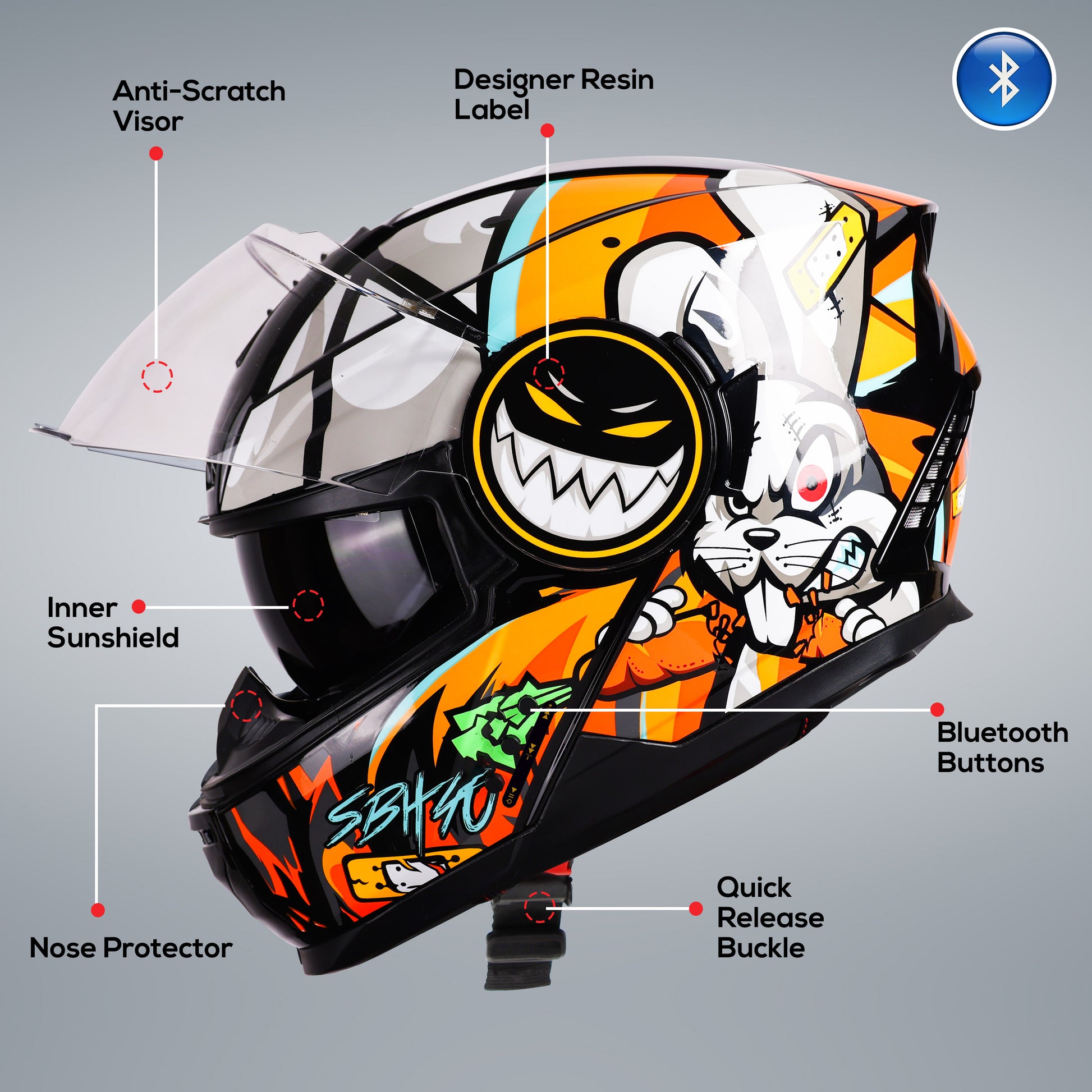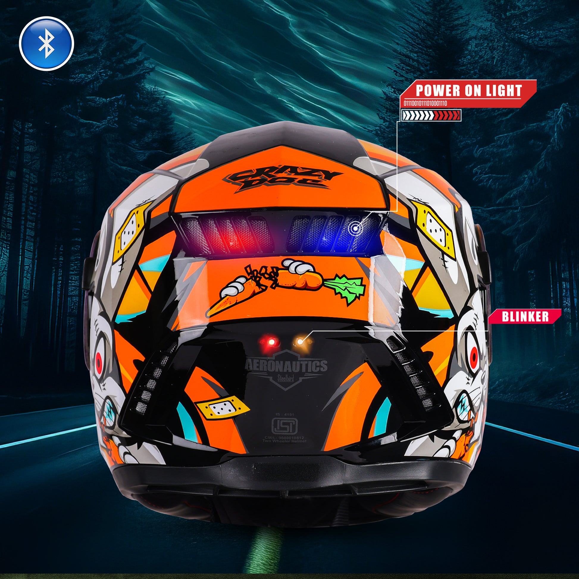 Steelbird Crazy Doe Bluetooth Full Face ISI Certified Graphic Helmet for Men with Inner Smoke Sun Shield | SBH-40 7Wings (Glossy Black Orange)