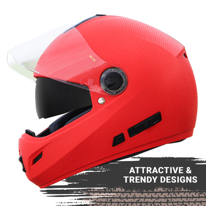 Steelbird Rox Cyborg ISI Certified Full Face Helmet for Men and Women with Inner Smoke Sun Shield and Outer Clear Visor (Dashing Red)