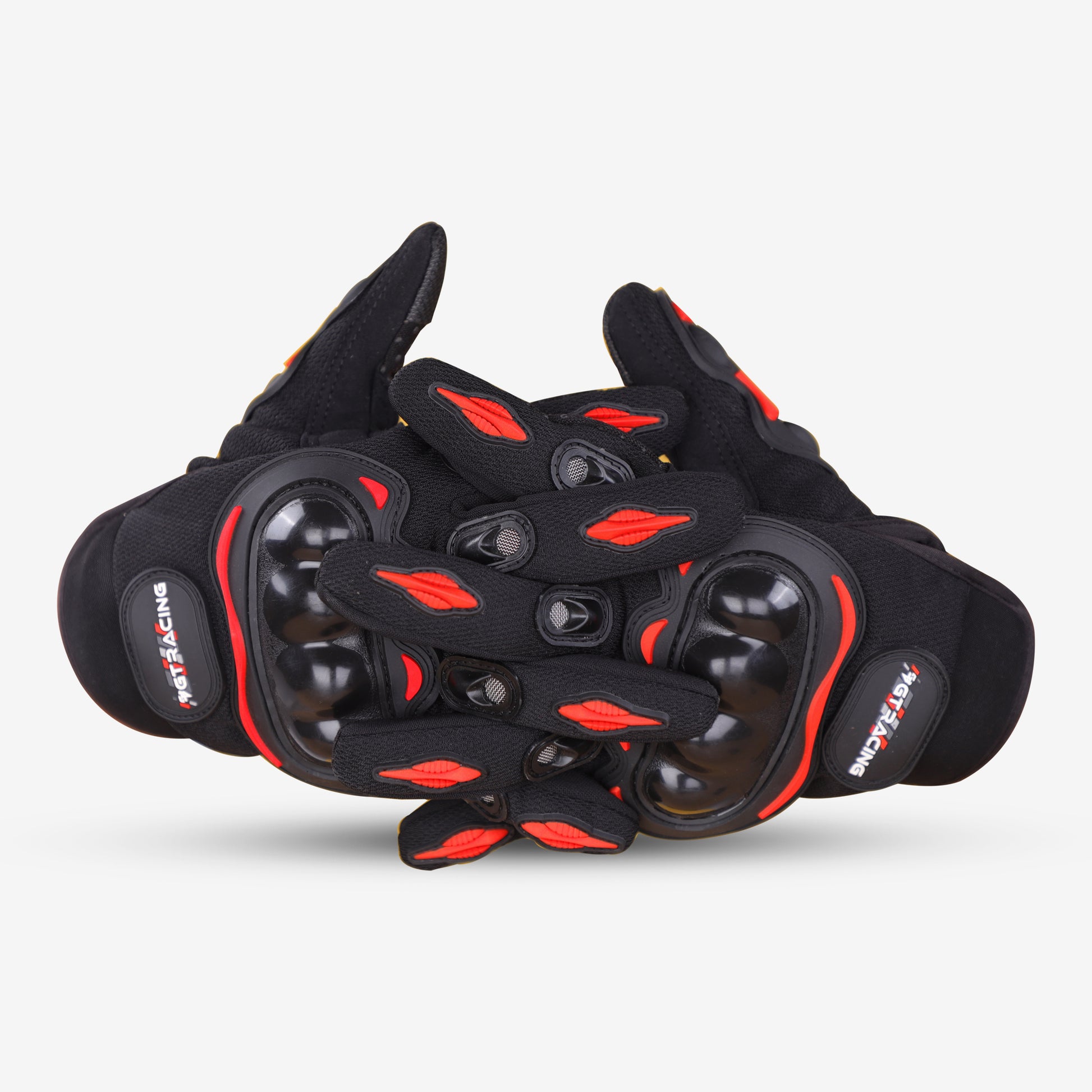 Steelbird GT-01 Full Finger Bike Riding Gloves with Touch Screen Sensitivity at Thumb and Index Finger, Protective Off-Road Motorbike Racing (Red)