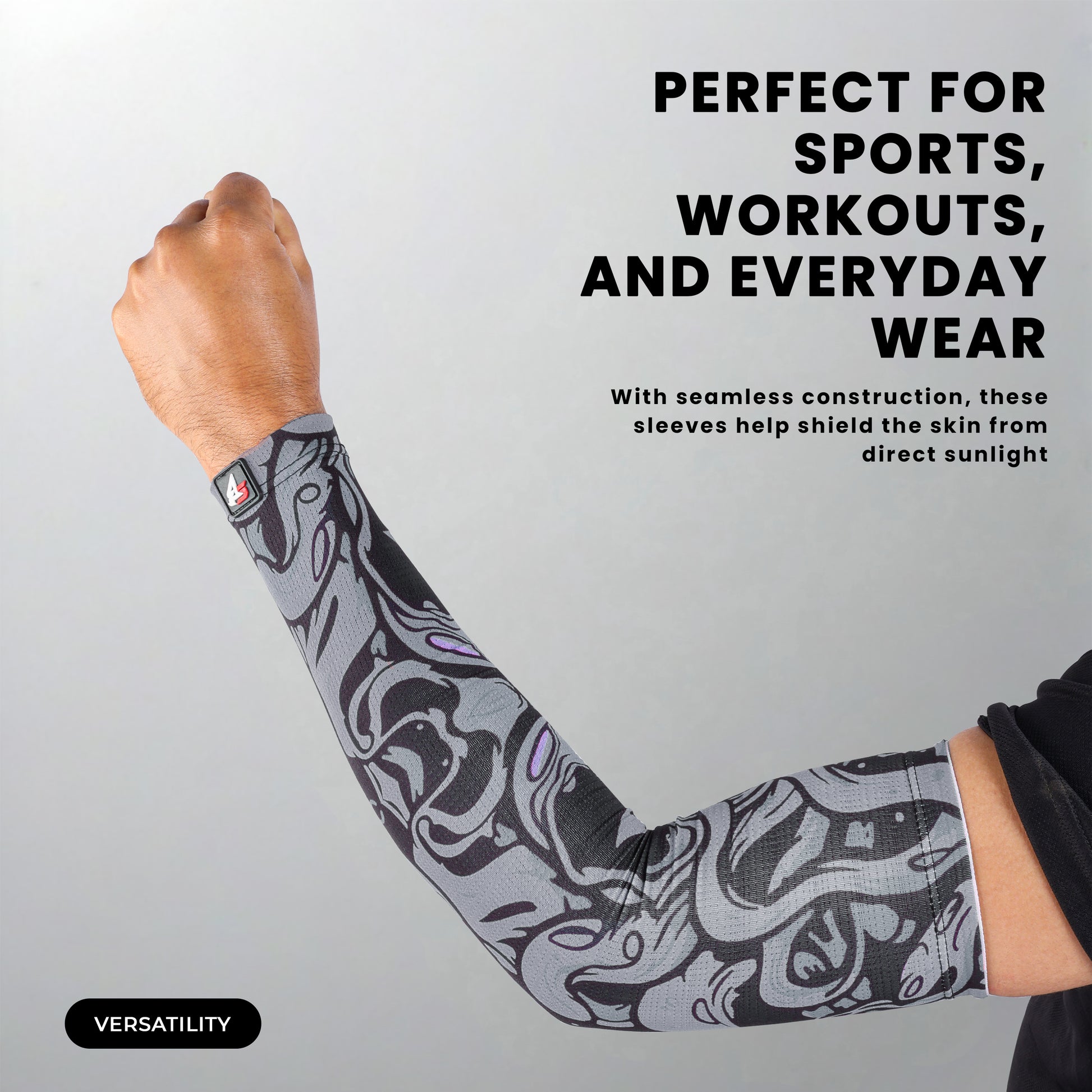 Steelbird Jispa 1.0 Arm Sleeves Grey Unisex for Sports, Running, Cricket, Bike Riding, Cycling, Basketball & Breathable (Sold as a Pair)