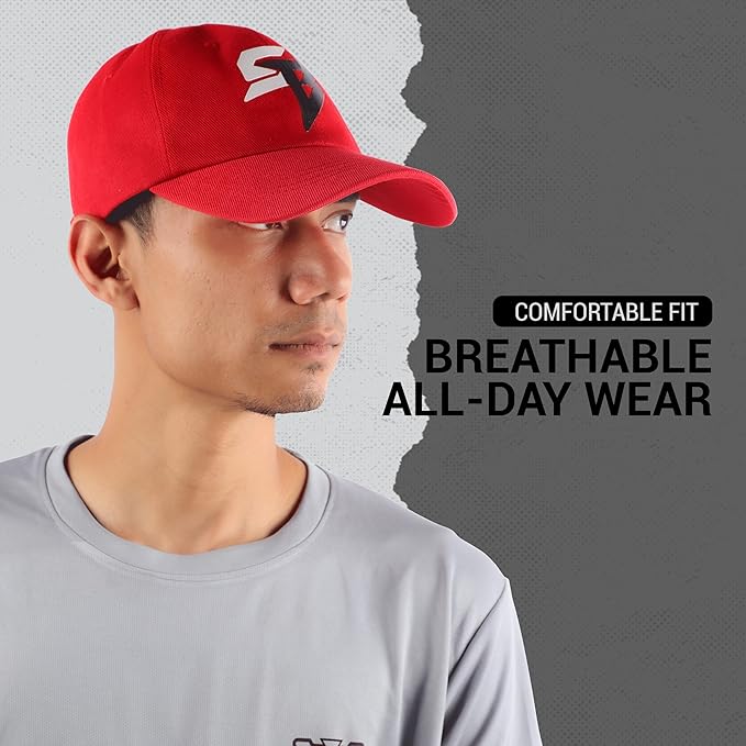 Steelbird Polyster Dad Cap with Adjustable Strap for All Sports, Cap for Girls, Caps for Gym, Sports Caps for Men and Women with Airholes (Red)