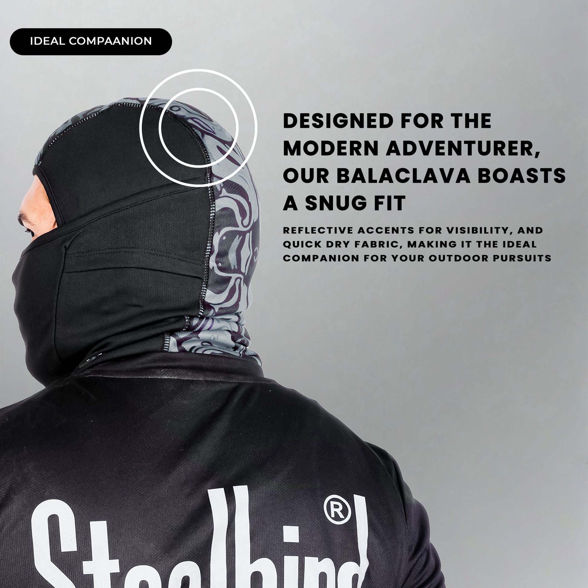 Steelbird Sarchu 1.0 Printed Balaclava Most Suitable for Motorcycling, Running, Sports, Head and Face Cover (Grey)