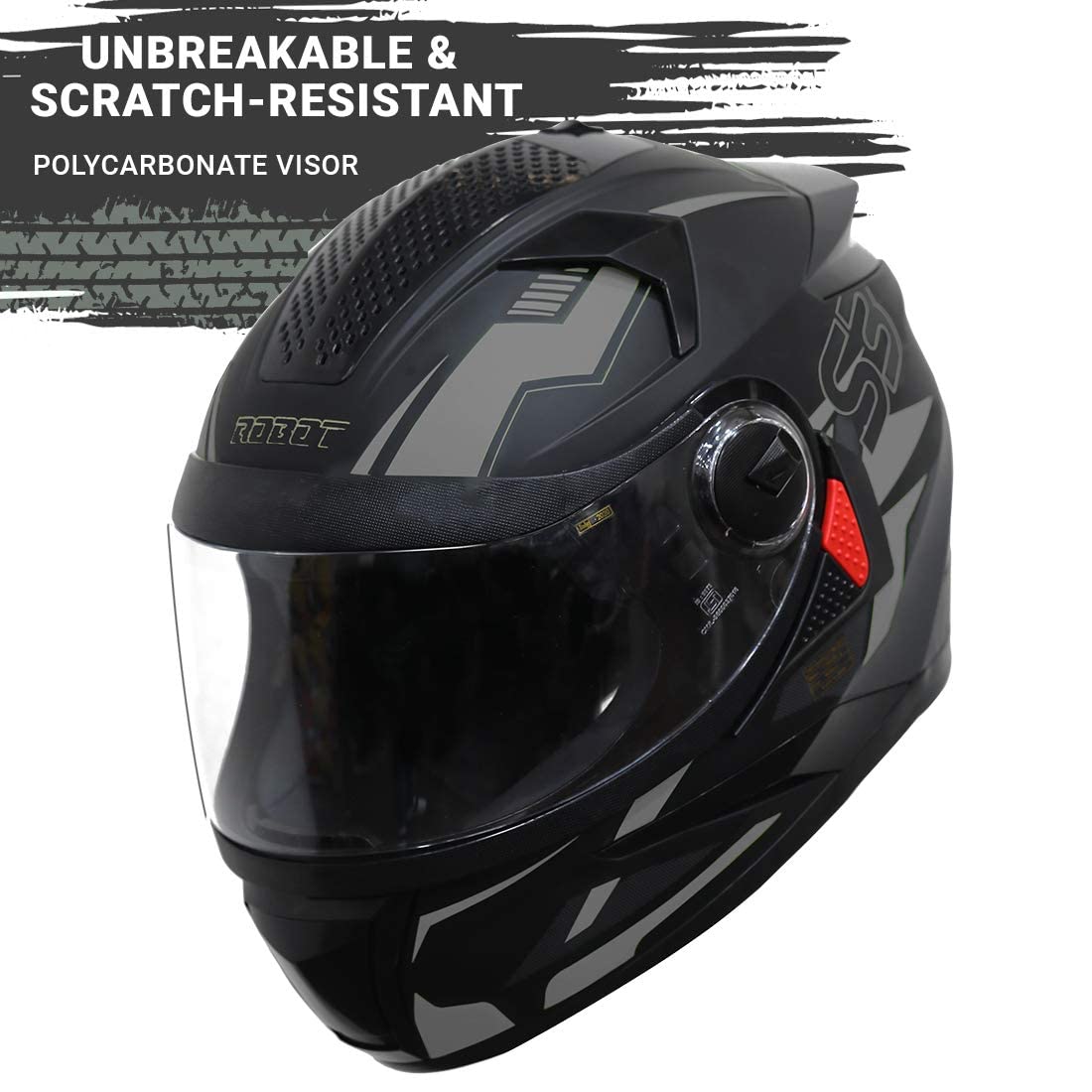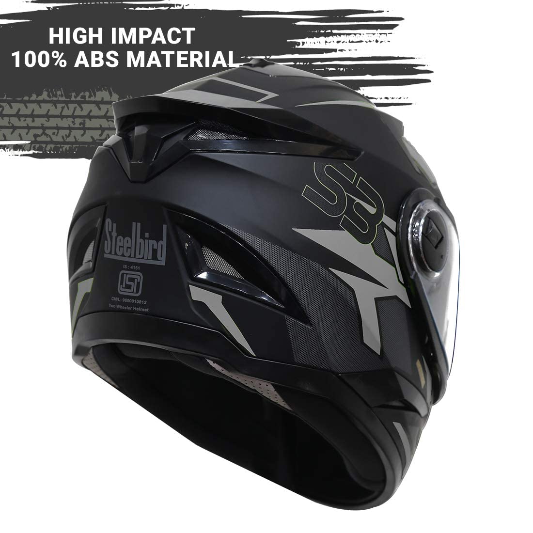 Steelbird SBH-17 Terminator ISI Certified Full Face Graphic Helmet for Men and Women (Matt Black Grey with Clear Visor)