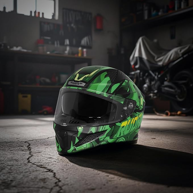 Steelbird SBH-25 Rudra Agni ISI Certified Full Face Graphic Helmet for Men with Inner Smoke Sun Shield (Glossy Black Green)