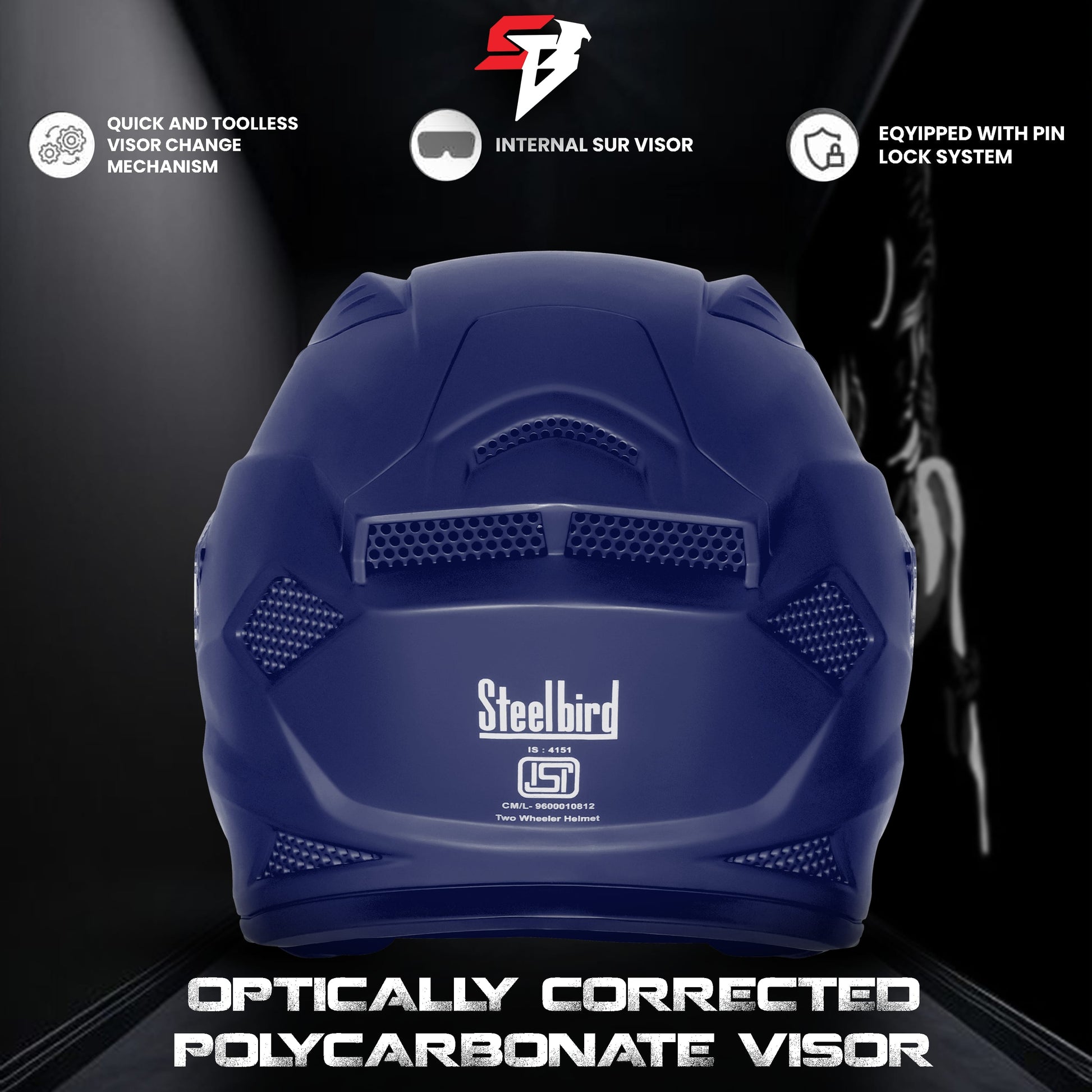 Steelbird SBH-25 Rudra ISI Certified Full Face Helmet for Men and Women (Glossy H.Blue with Smoke Visor)
