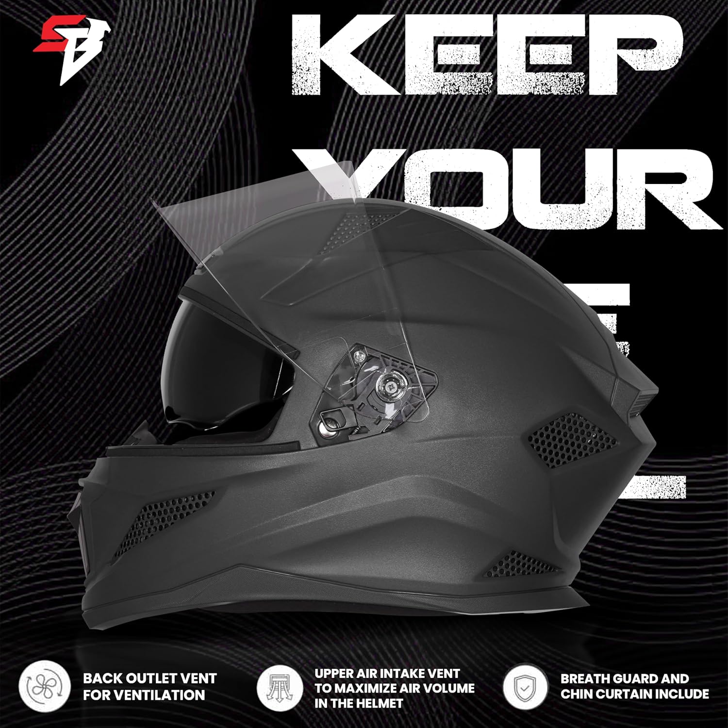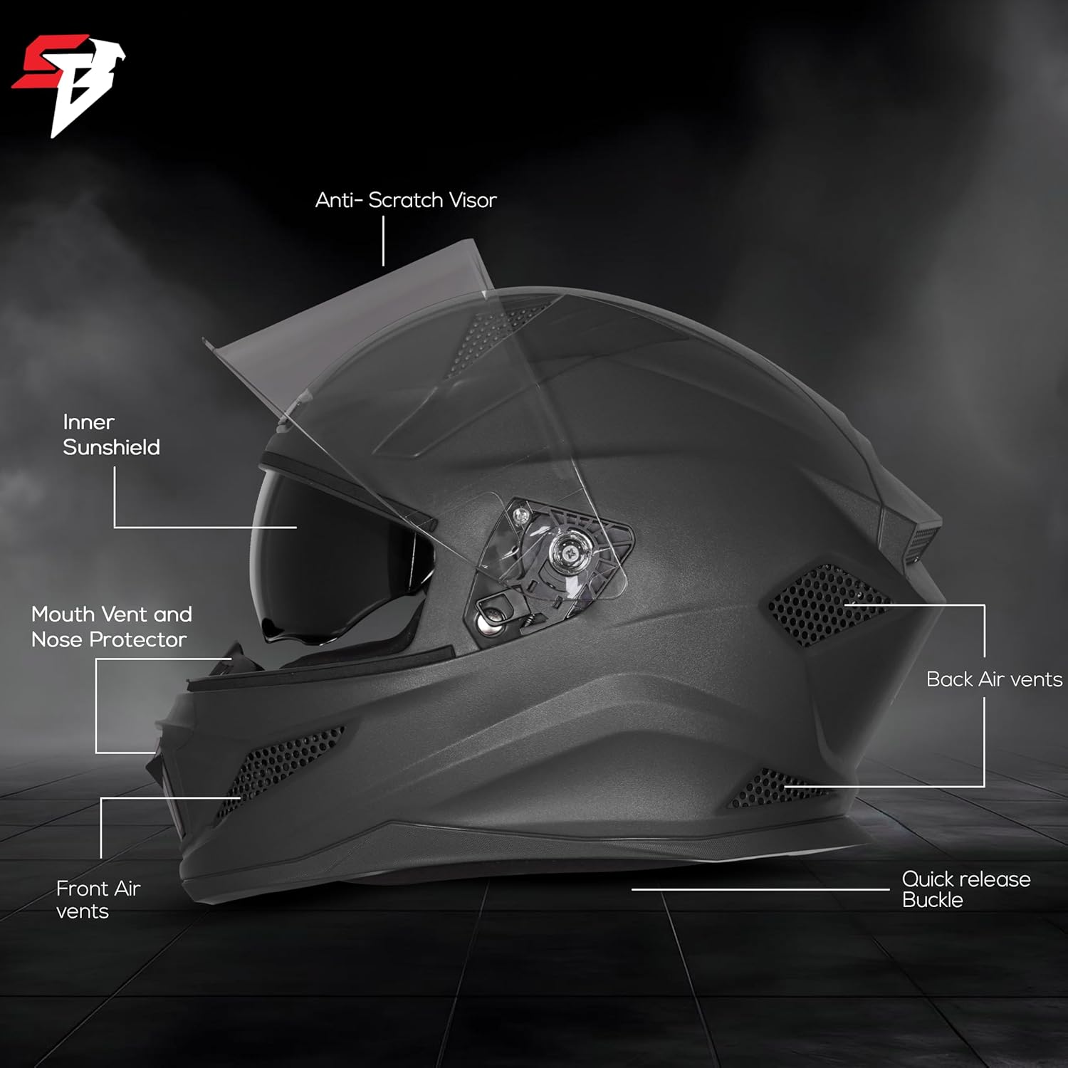 Steelbird SBH-25 Rudra ISI Certified Full Face Helmet for Men and Women with Inner Smoke Sun Shield (Dashing Black)