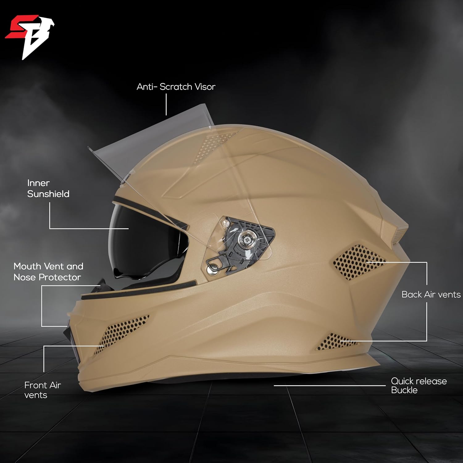 Steelbird SBH-25 Rudra ISI Certified Full Face Helmet for Men and Women with Inner Smoke Sun Shield (Dashing Desert Storm)