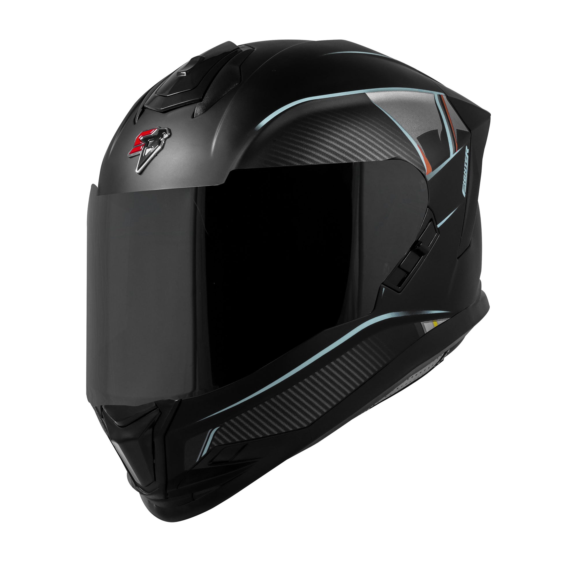 Steelbird SBH-57 Carbon Fighter ISI and DOT Certified Full Face Helmet for Men and Women (Glossy Black Light Blue)