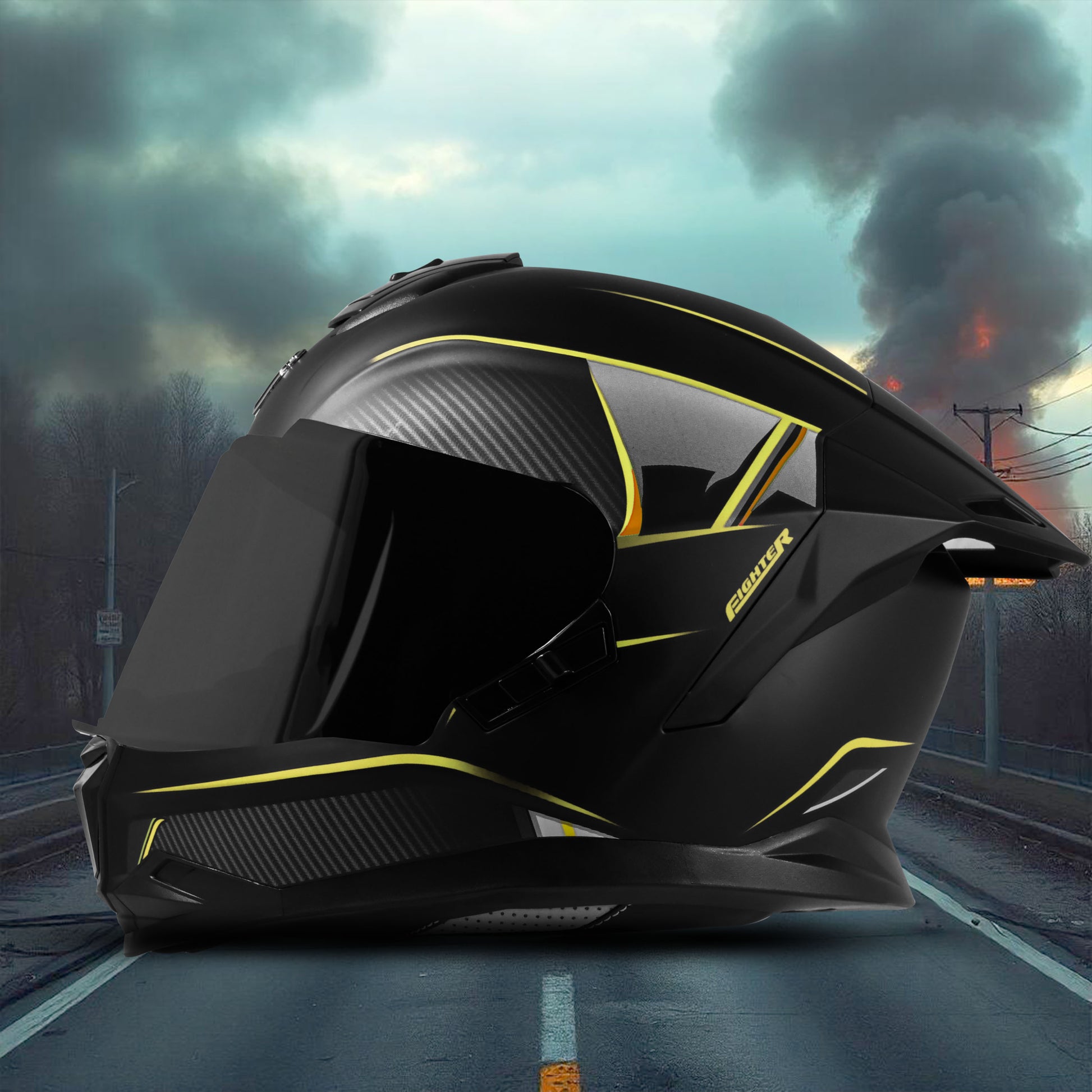 Steelbird SBH-57 Carbon Fighter ISI and DOT Certified Full Face Helmet for Men and Women (Glossy Black Neon).