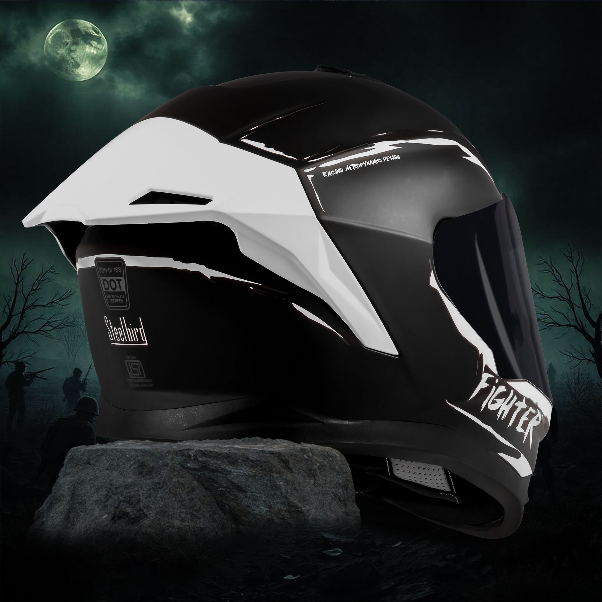 Steelbird SBH-57 Fighter F2 ISI and DOT Certified Full Face Helmet for Men and Women With Inner Silver Sun Shield (Glossy Black Silver).