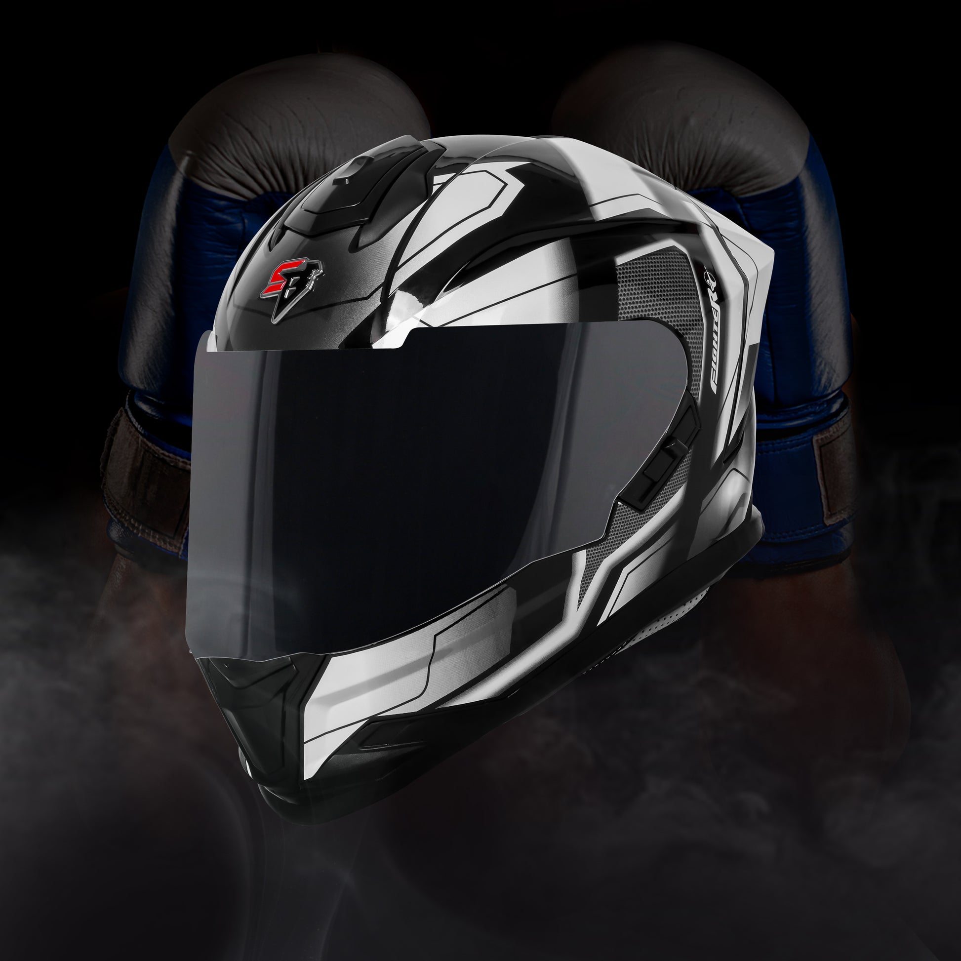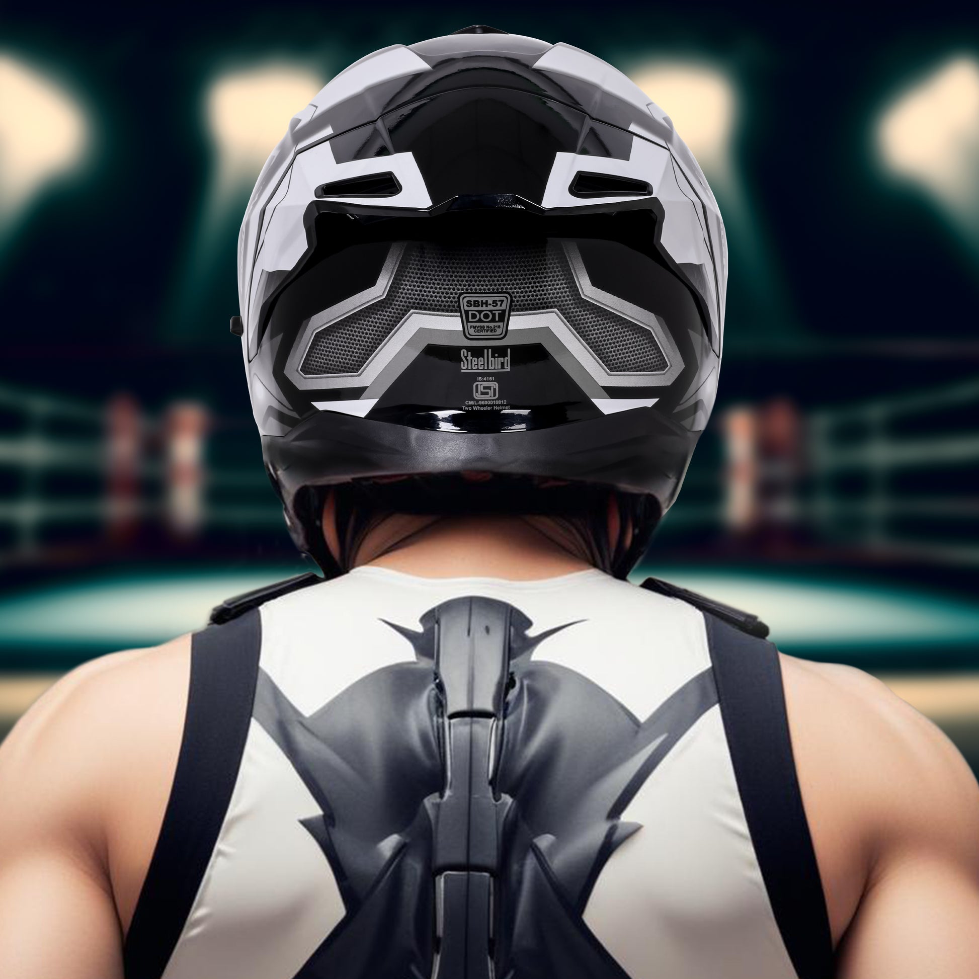 Steelbird SBH-57 Fighter F3 ISI and DOT Certified Full Face Helmet for Men and Women with Inner Silver Sun Shield (Glossy Black White)