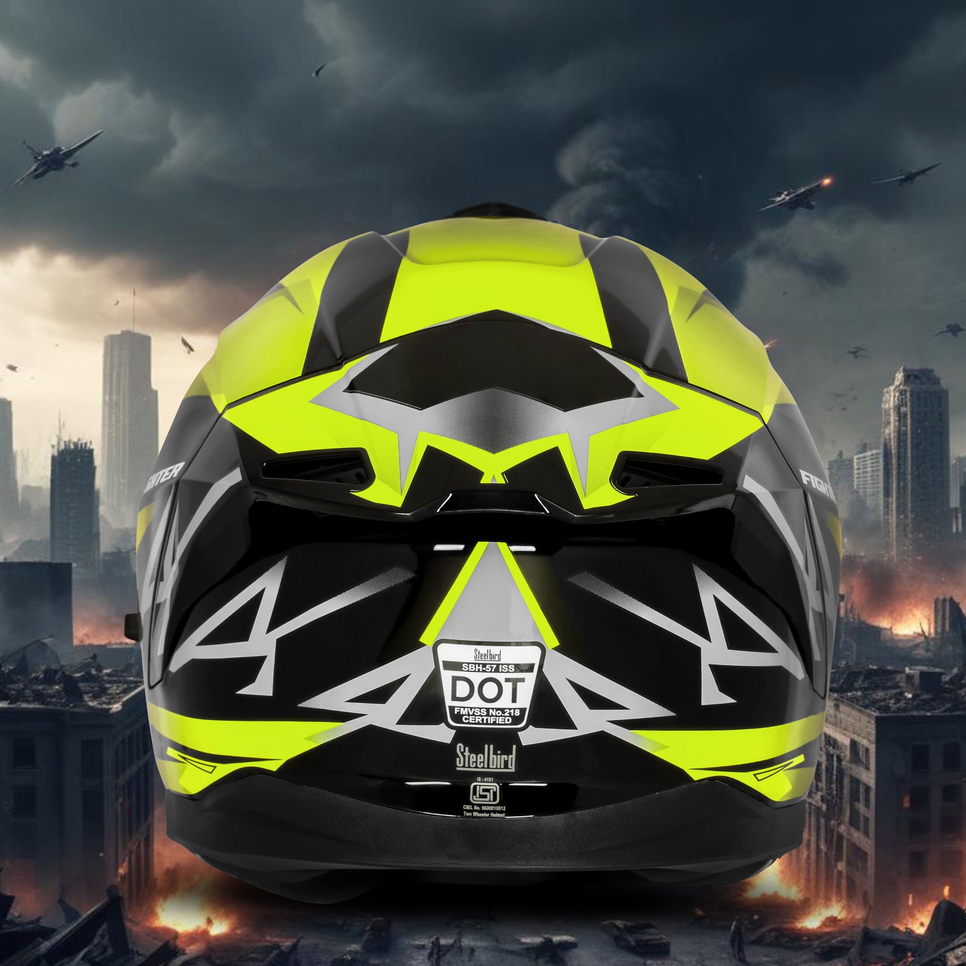 Steelbird SBH-57 Fighter F4 ISI and DOT Certified Full Face Helmet for Men and Women with Inner Silver Sun Shield (Glossy Black Fluo Yellow)