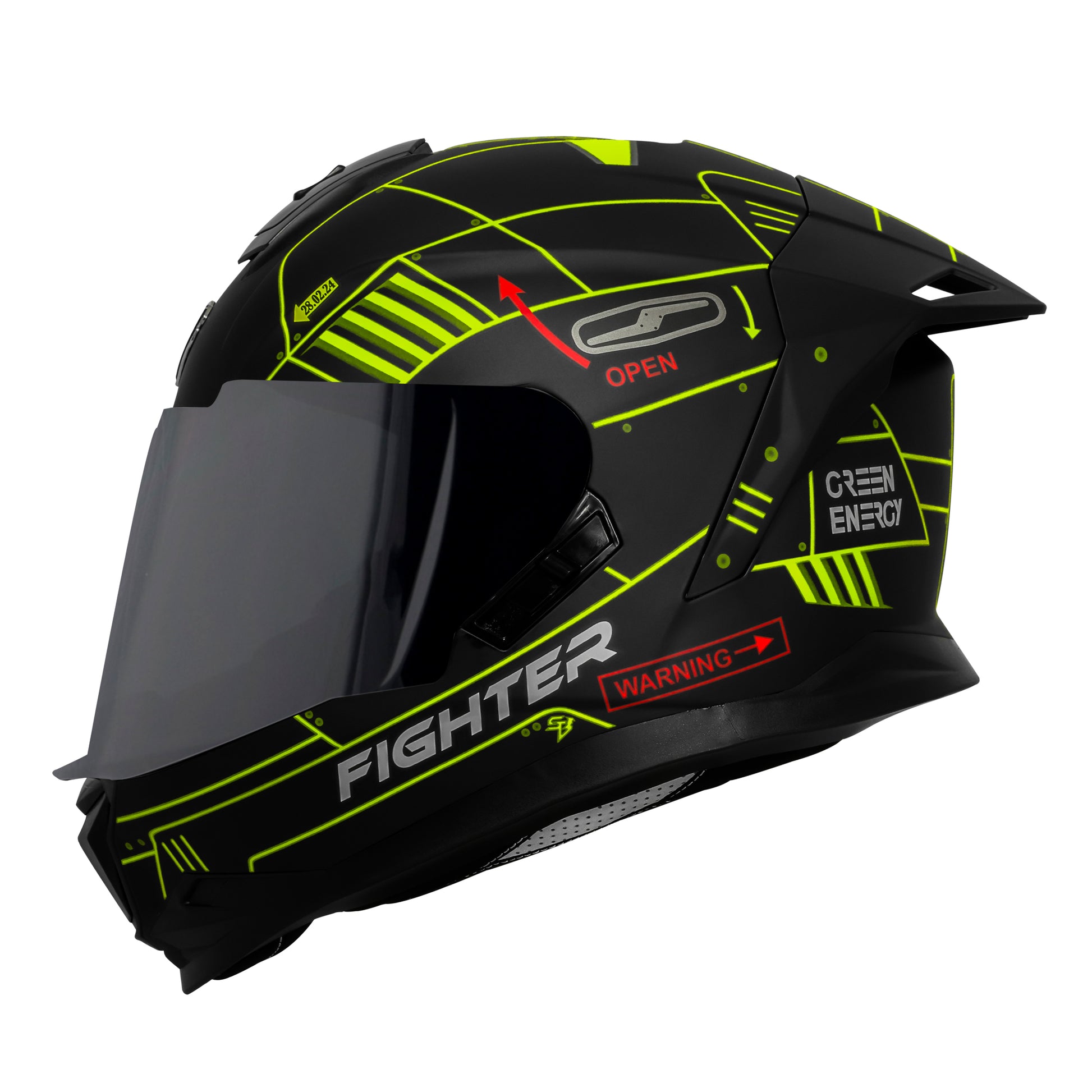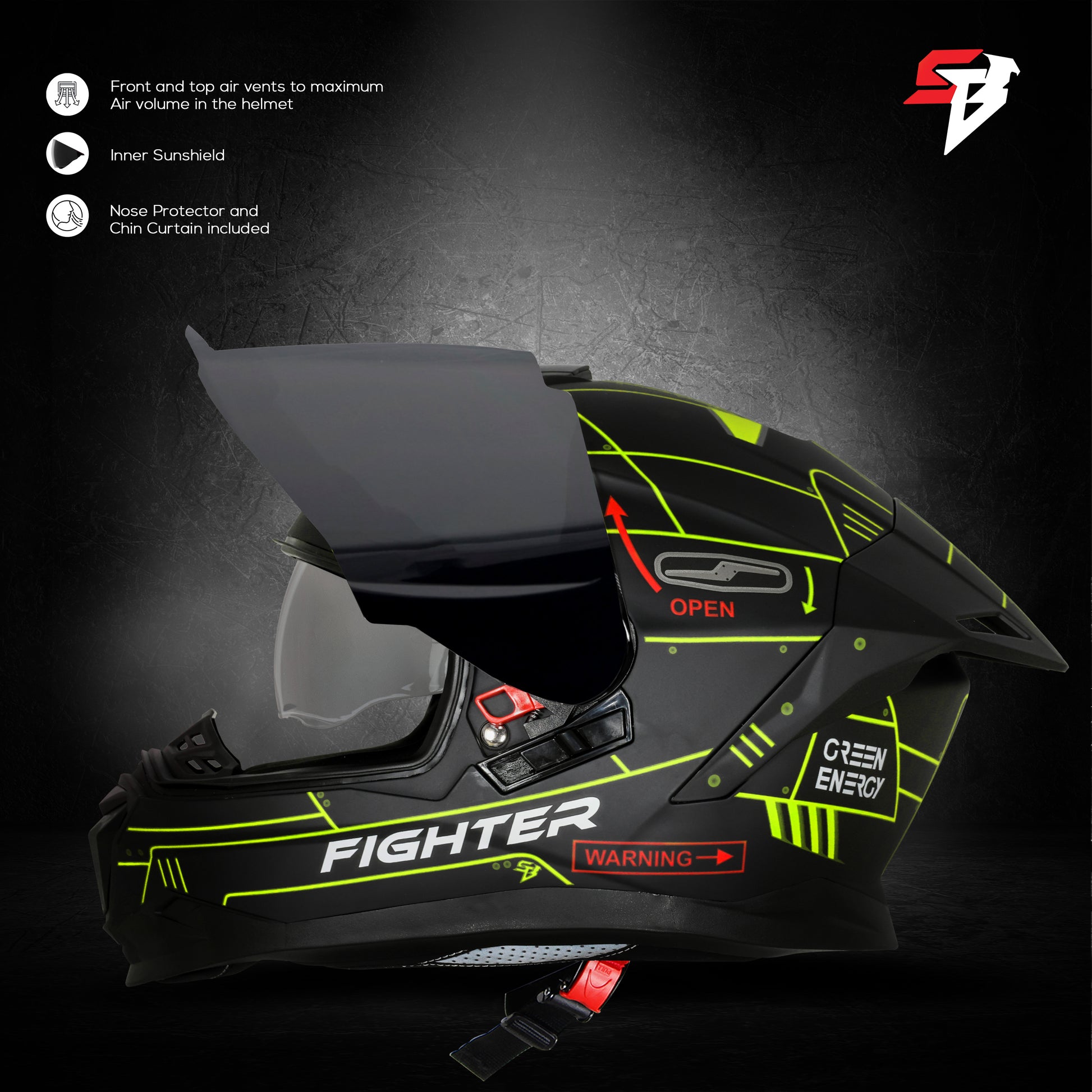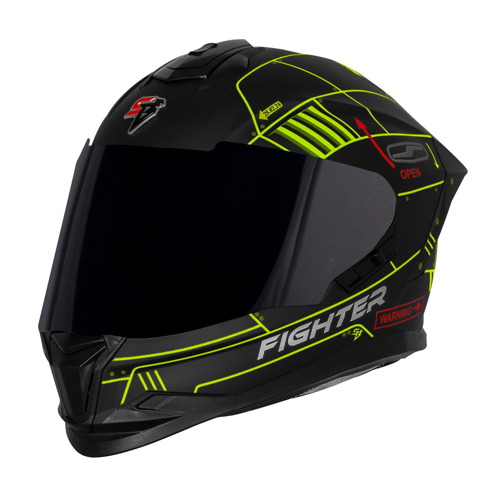 Steelbird SBH-57 Fighter F6 ISI and DOT Certified Full Face Graphic Helmet for Men and Women with Inner Silver Sun Shield (Glossy Black Neon)