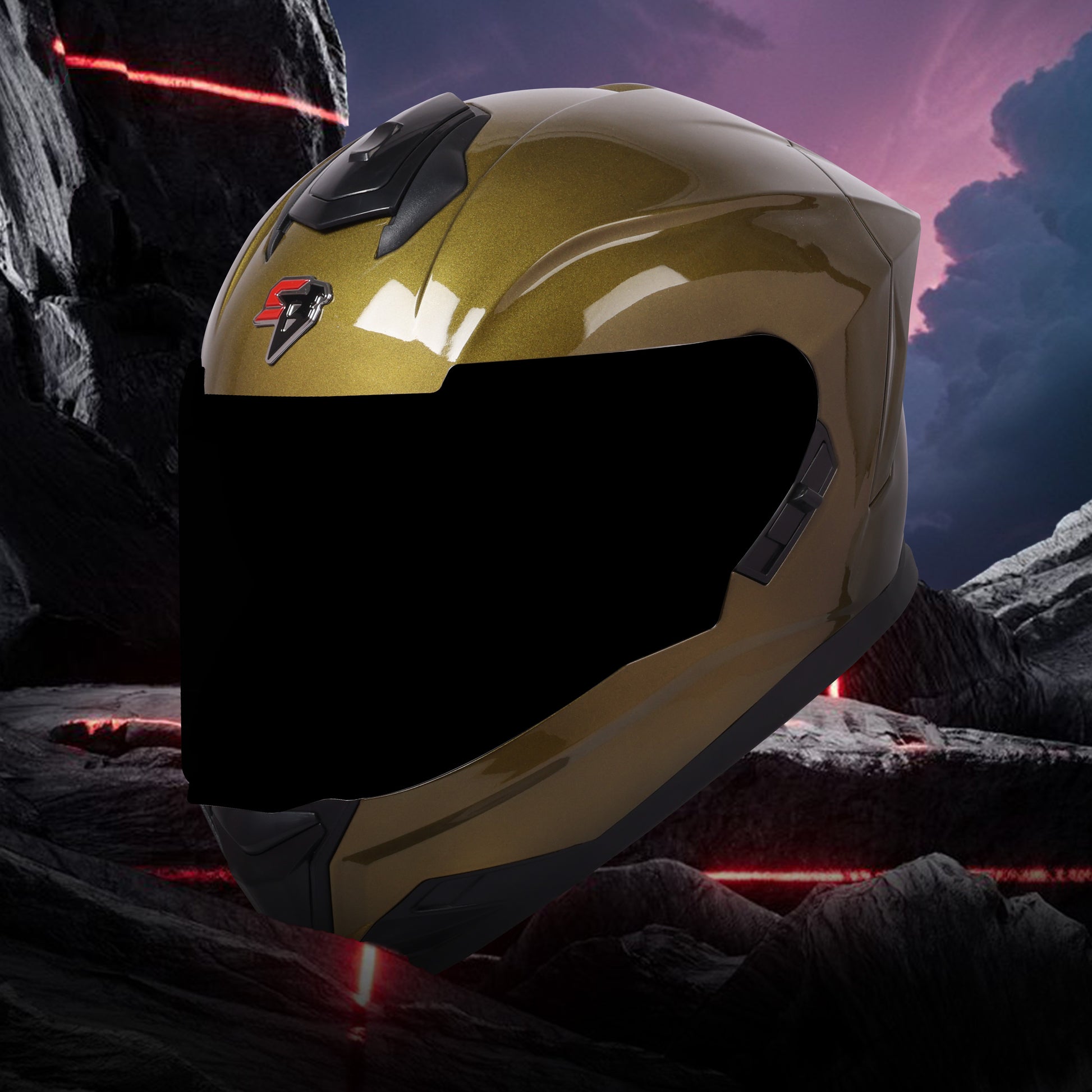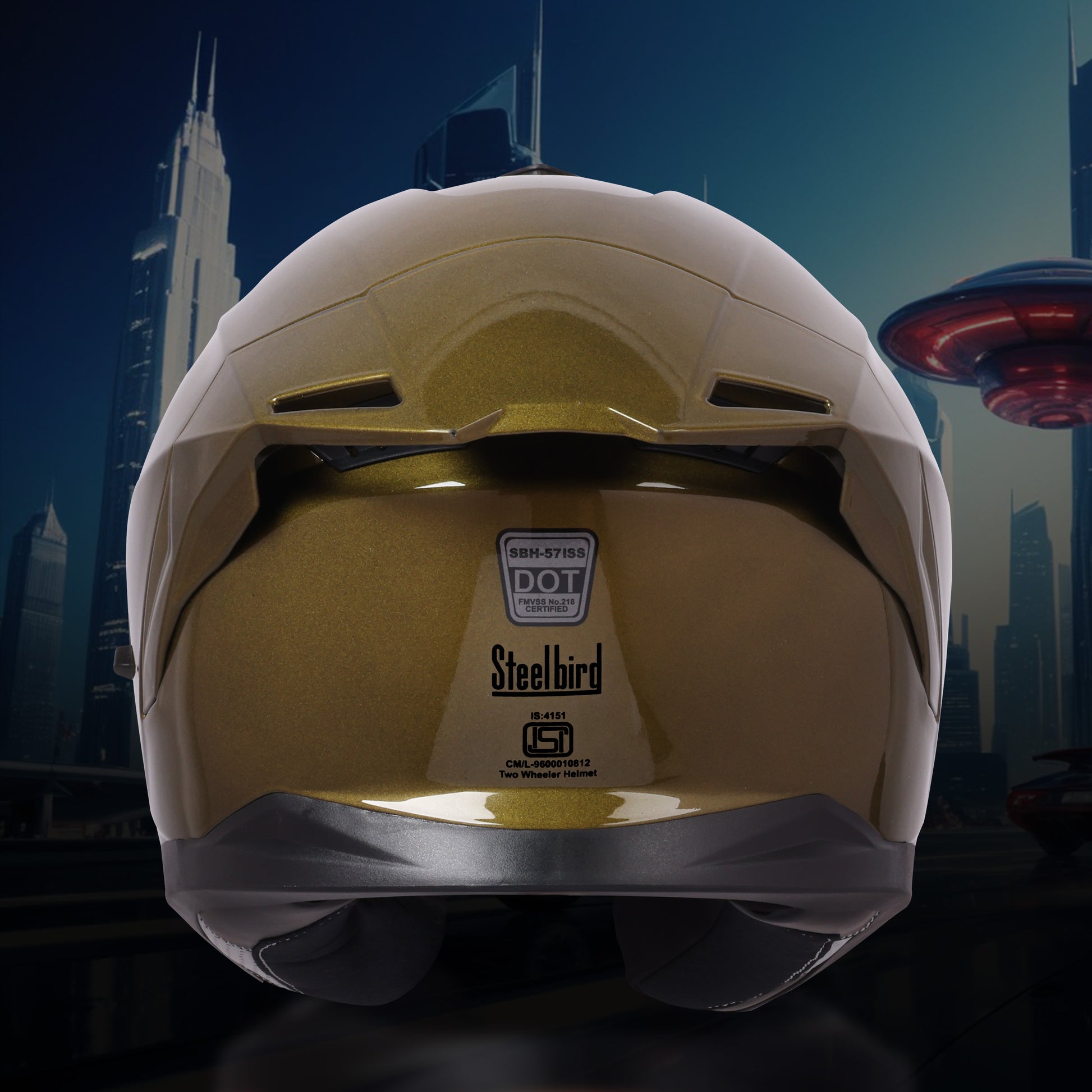 Steelbird SBH-57 Fighter ISI and DOT Certified Full Face Helmet for Men and Women with Inner Chrome Sun Shield (Glossy Steelbird Olive Radiance)