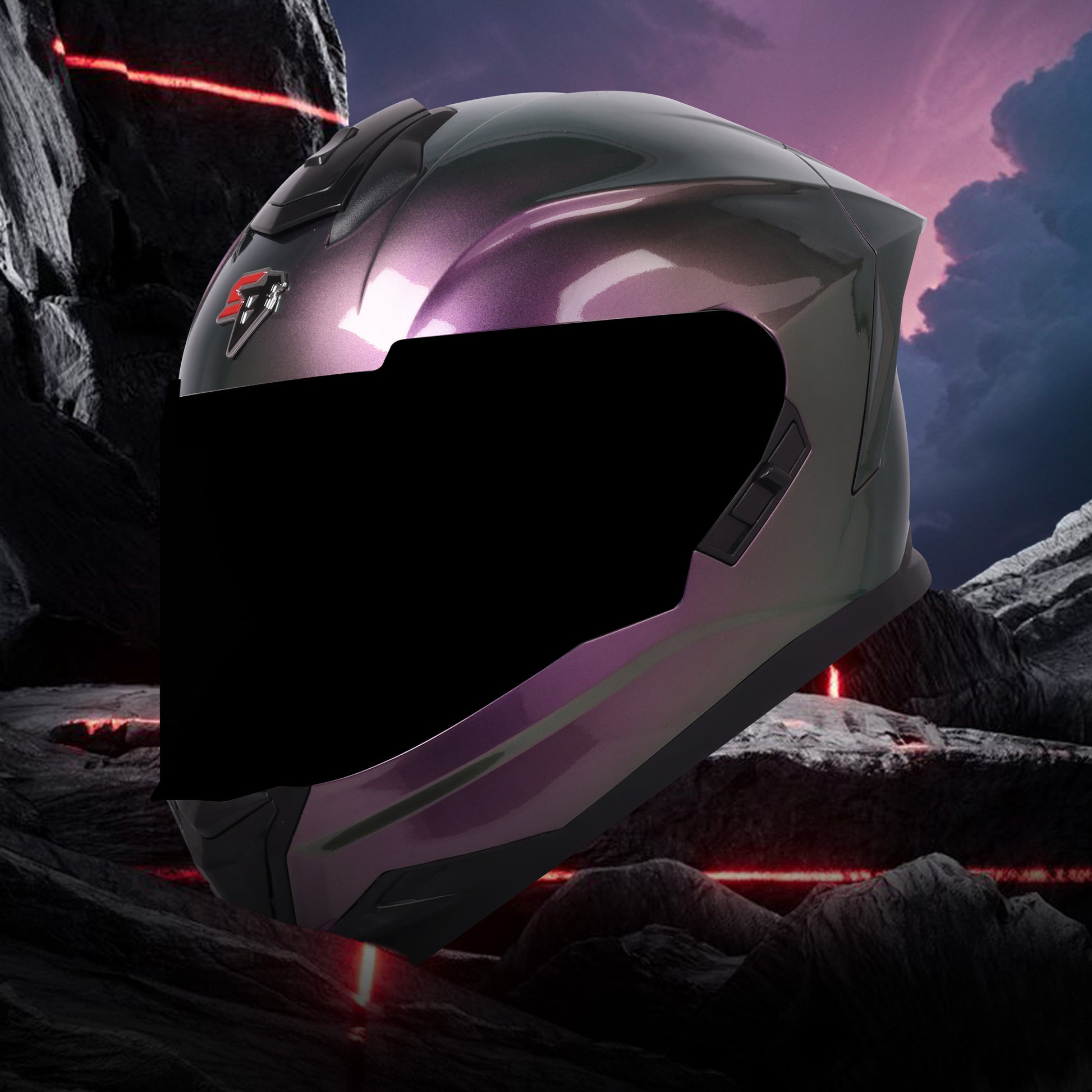 Steelbird SBH-57 Fighter ISI and DOT Certified Full Face Helmet for Men and Women with Inner Chrome Sun Shield (Glossy Steelbird Orchid)