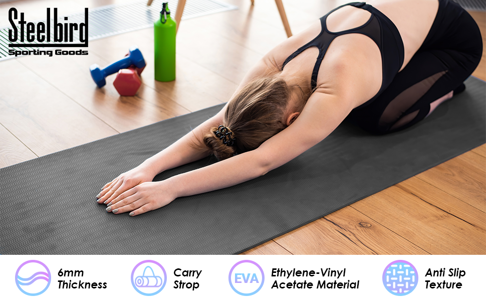 Steelbird Yoga Mat for Men and Women 6 x 2 Feet Wide Extra Thick Exercise Mat For Workout,Yoga,Fitness,Gym, Pilates And High-Density Anti-Tear Non-Slip Light Weight Mat (Grey)